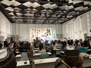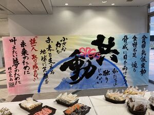 “共動“ をテーマとした高校生の書道パフォーマンス ひとりひとりが自身の夢を語り、SDGs達成のための連携、行動に向けた力強いメッセージとパフォーマンスを披露しました。