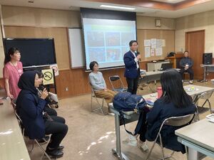 説明の中で印象に残ったことは、岡山の公民館は年間100万人以上が利用していること、国際理解教育、交流の場にもなっていること、世代を超えて学び合う場であり、防災キャンプ、コミュニティキッチン(ボランティアが運営)、高齢者の運動・会話をする機会の創出、親子の支援、そして日本語教室など実に様々な活動が行われていることです。