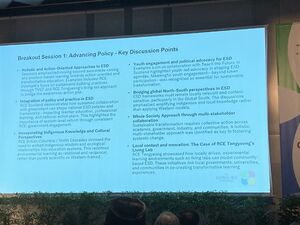 主なポイント:全発表を通じて、持続可能性に向けた政策推進には多層的な連携、若者の実質的な参加、科学的知見と先住民の知恵体系の統合、参加型学習環境の構築が不可欠であることが強調されました。モデレーターは、グローバルRCEネットワーク全体で現場レベルの活動と革新的な学習アプローチを結びつける重要性を指摘し、セッションを締めくくりました。