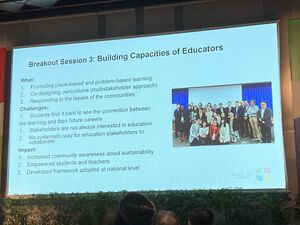 主なポイント:セッションの締めくくりとして、各グループが学校での授業計画を発表しました。セッション中、参加者はすべての能力とアプローチを統合する必要があるのか、あるいは活動にこれらを統合する最善の方法は何かを理解しようとしました。必ずしも全てを統合する必要はないと強調されました。むしろ目標は、探究と体験学習の機会を提供する、包括的で参加型かつ学際的なアプローチを採用することです。これらのアプローチを通じて様々なトピックや概念に取り組み、関連する持続可能性コンピテンシーを意味のある方法で文脈に適した形で統合することが可能です。