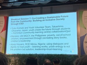 私が参加した分科会(分科会7地域から持続可能な未来を共創する:ESDによるインクルーシブな社会の構築)で印象に残ったのは、以下のような発表とグループワークです。